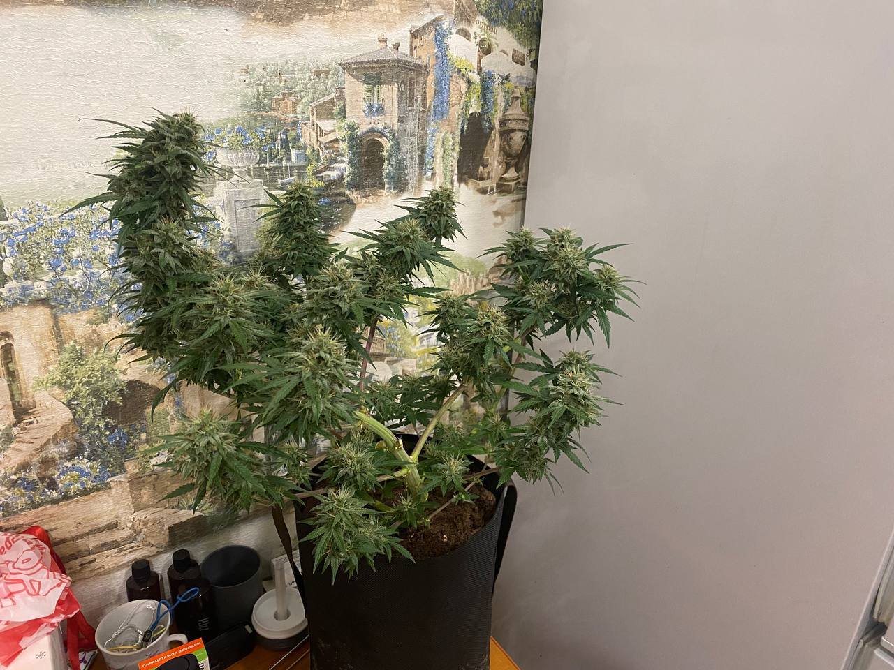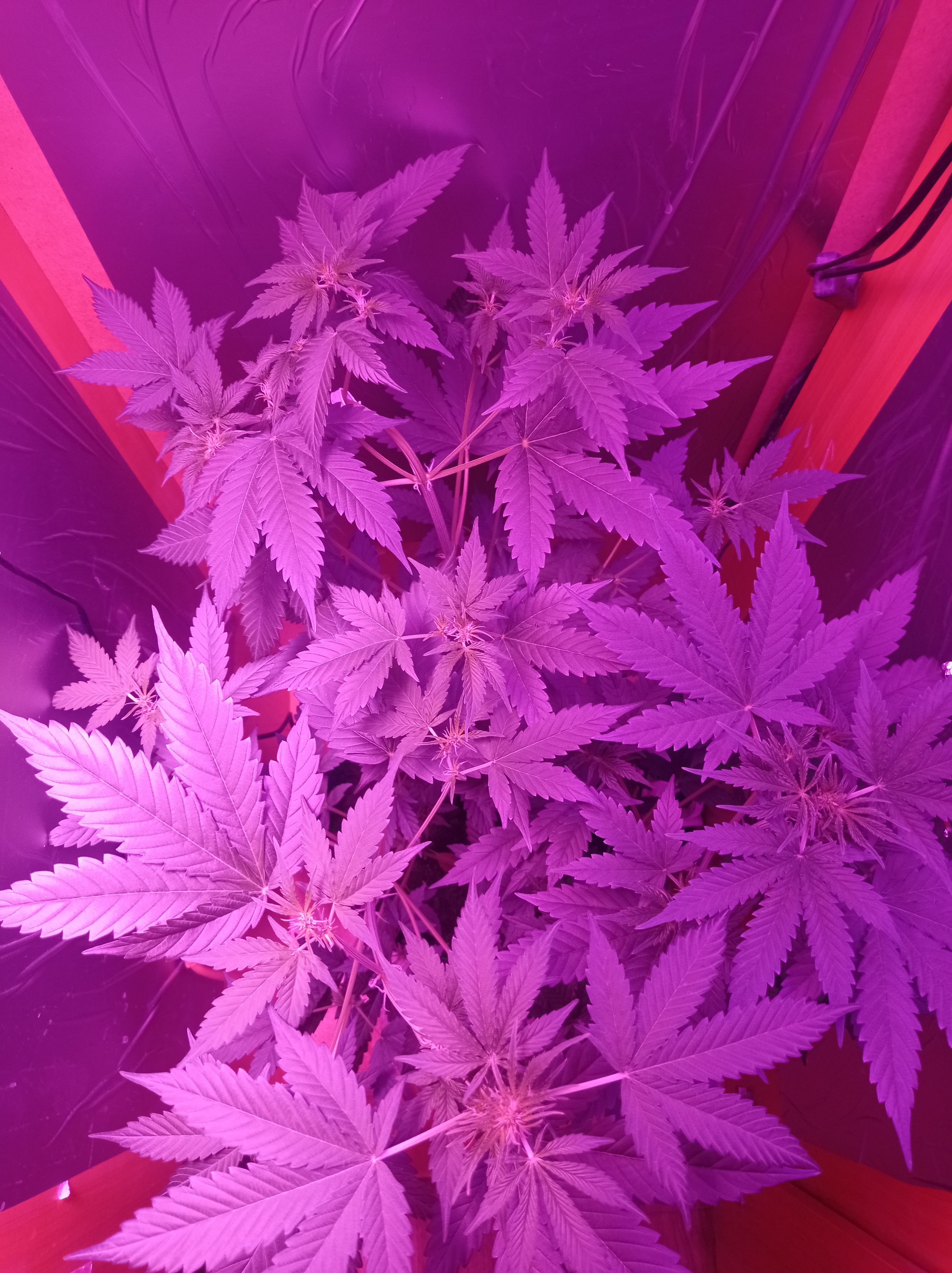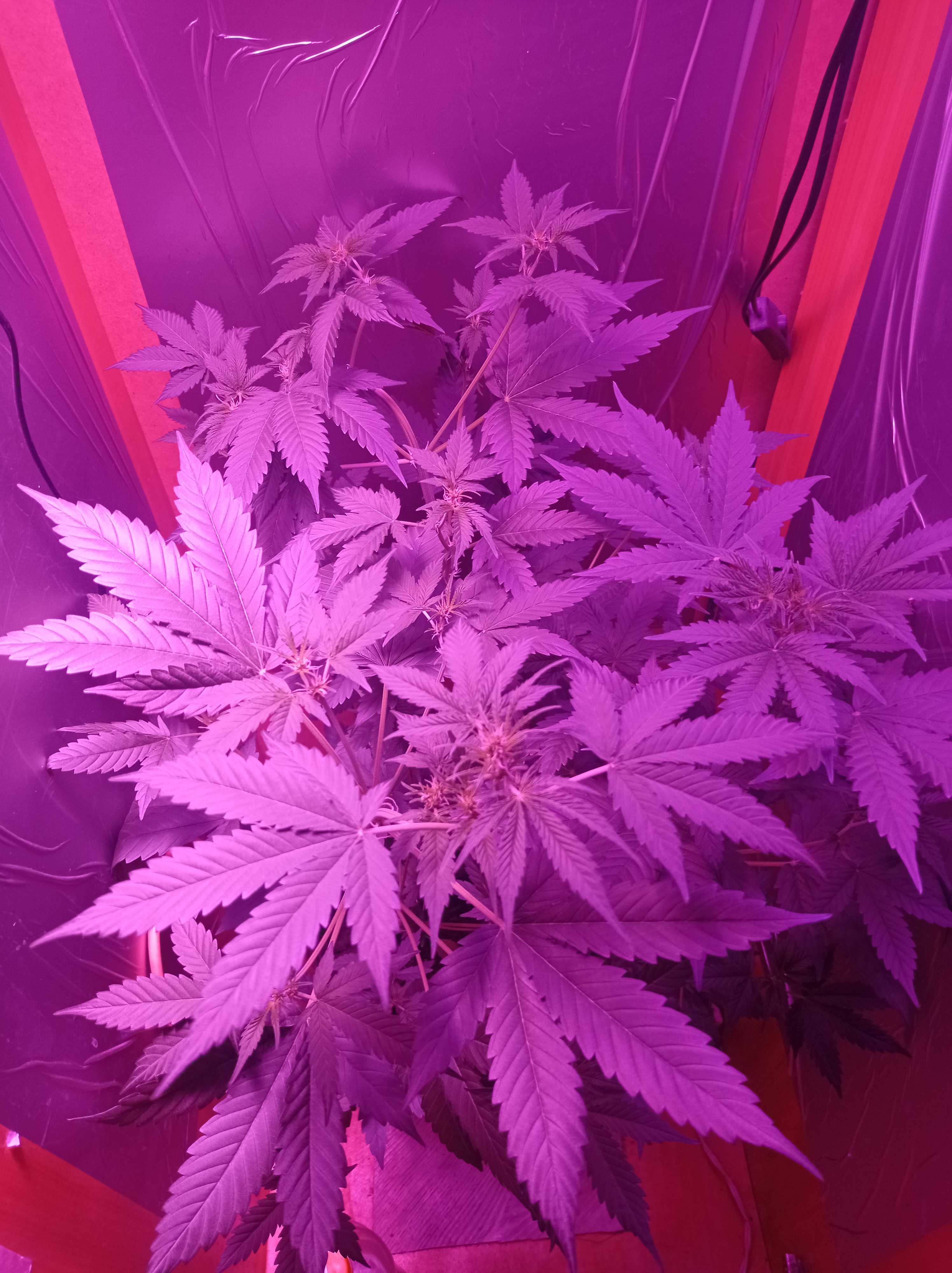 Посадил 16 марта, сейчас уже потихоньку подходит к концу, на кусту думаю грамм 40 сухого точно есть, загадывать пока не буду. грунт 10 литров поливаю 2л рост цветка 145 от земли, листочки начинают быть фиолетовыми и очень красиво) ростет с геометрической прогрессией, с челухи уже прёт от 2х поднятий с воды, очень хорошо расслабляет, но если перебрать можно отключиться как это было с моим кентом, настоятельно рекомендую, но лучше делать 2-3 перерывчик не большой) Ребятам с гроверз отдельное спасибо за качественный продукт, всегда буду тут. ❤️