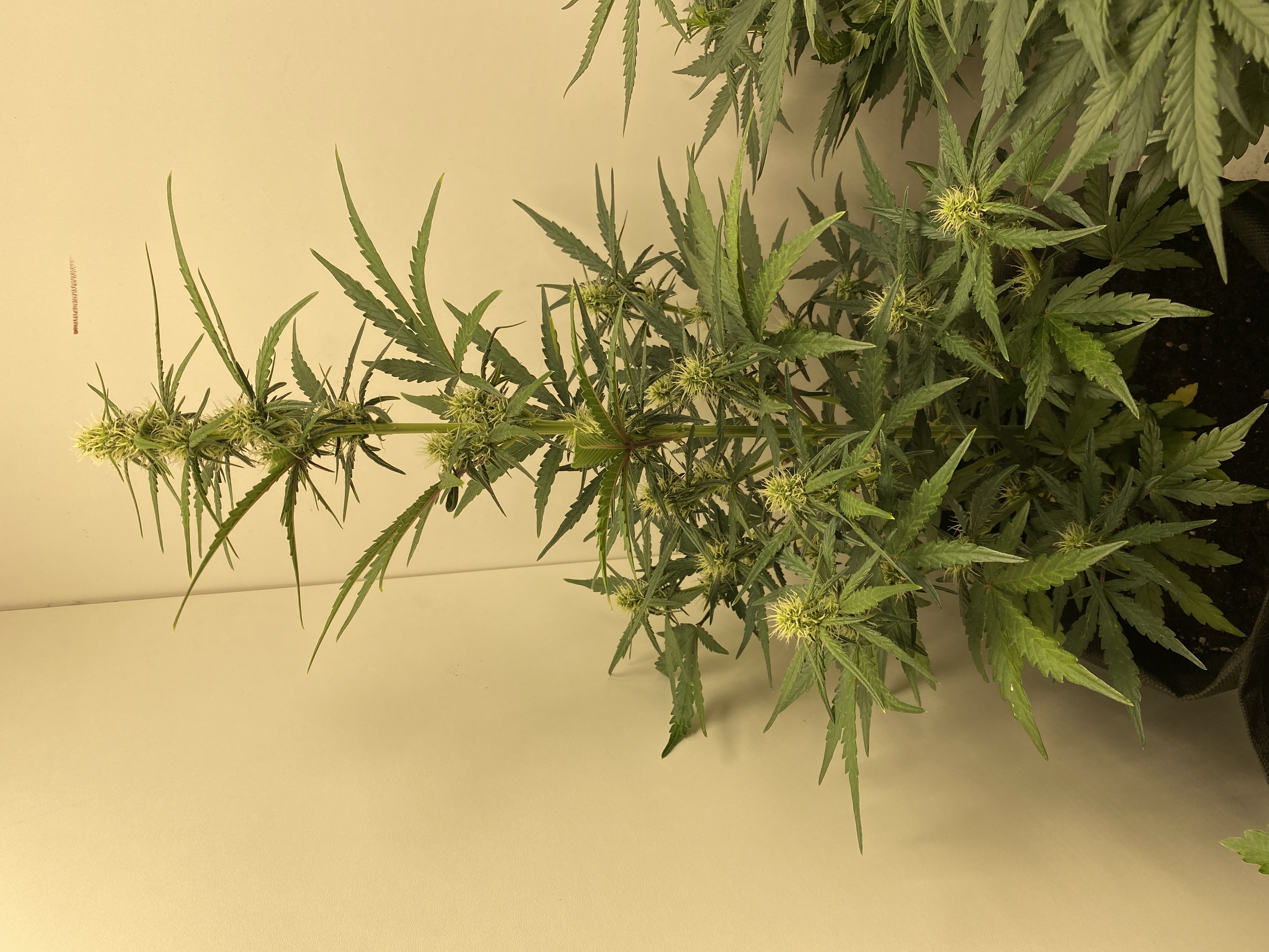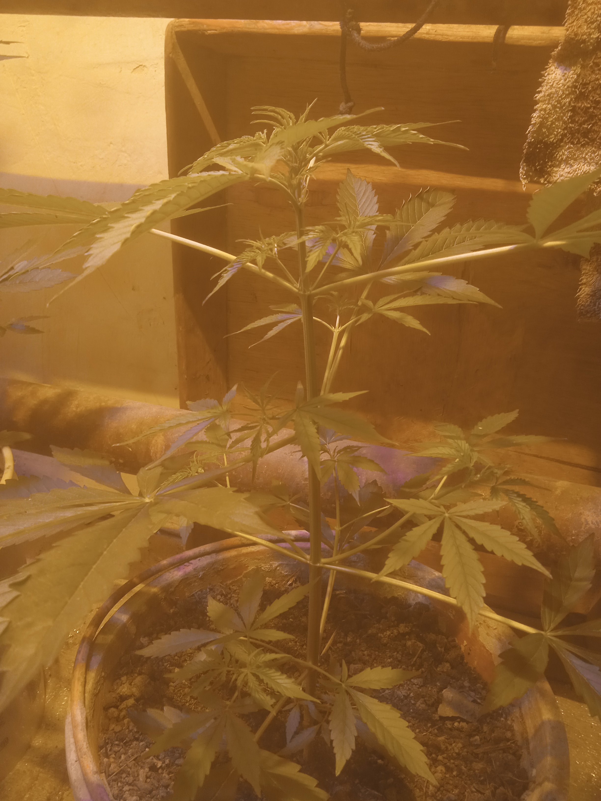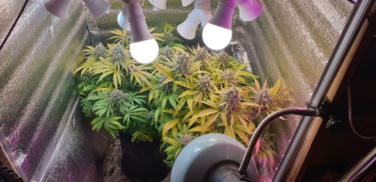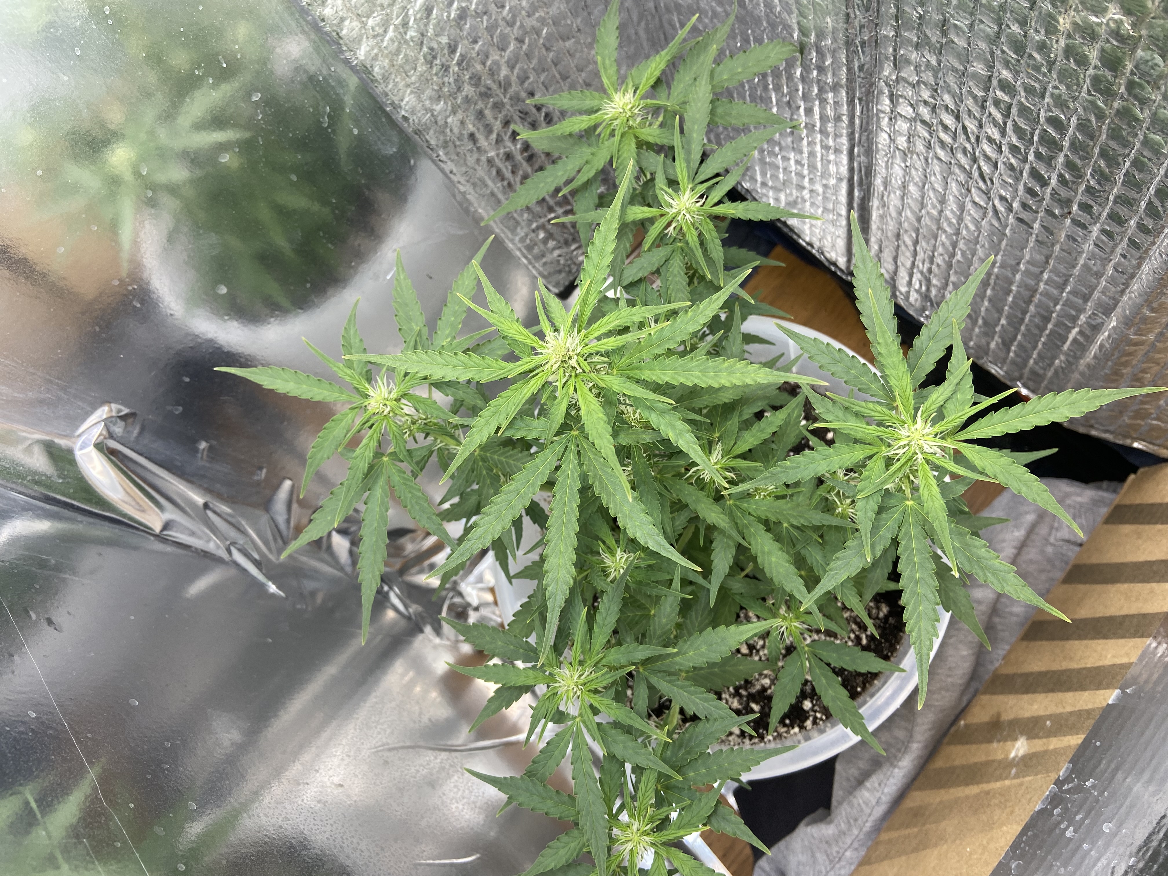 Посадил 16 марта, сейчас уже потихоньку подходит к концу, на кусту думаю грамм 40 сухого точно есть, загадывать пока не буду. грунт 10 литров поливаю 2л рост цветка 145 от земли, листочки начинают быть фиолетовыми и очень красиво) ростет с геометрической прогрессией, с челухи уже прёт от 2х поднятий с воды, очень хорошо расслабляет, но если перебрать можно отключиться как это было с моим кентом, настоятельно рекомендую, но лучше делать 2-3 перерывчик не большой) Ребятам с гроверз отдельное спасибо за качественный продукт, всегда буду тут. ❤️
