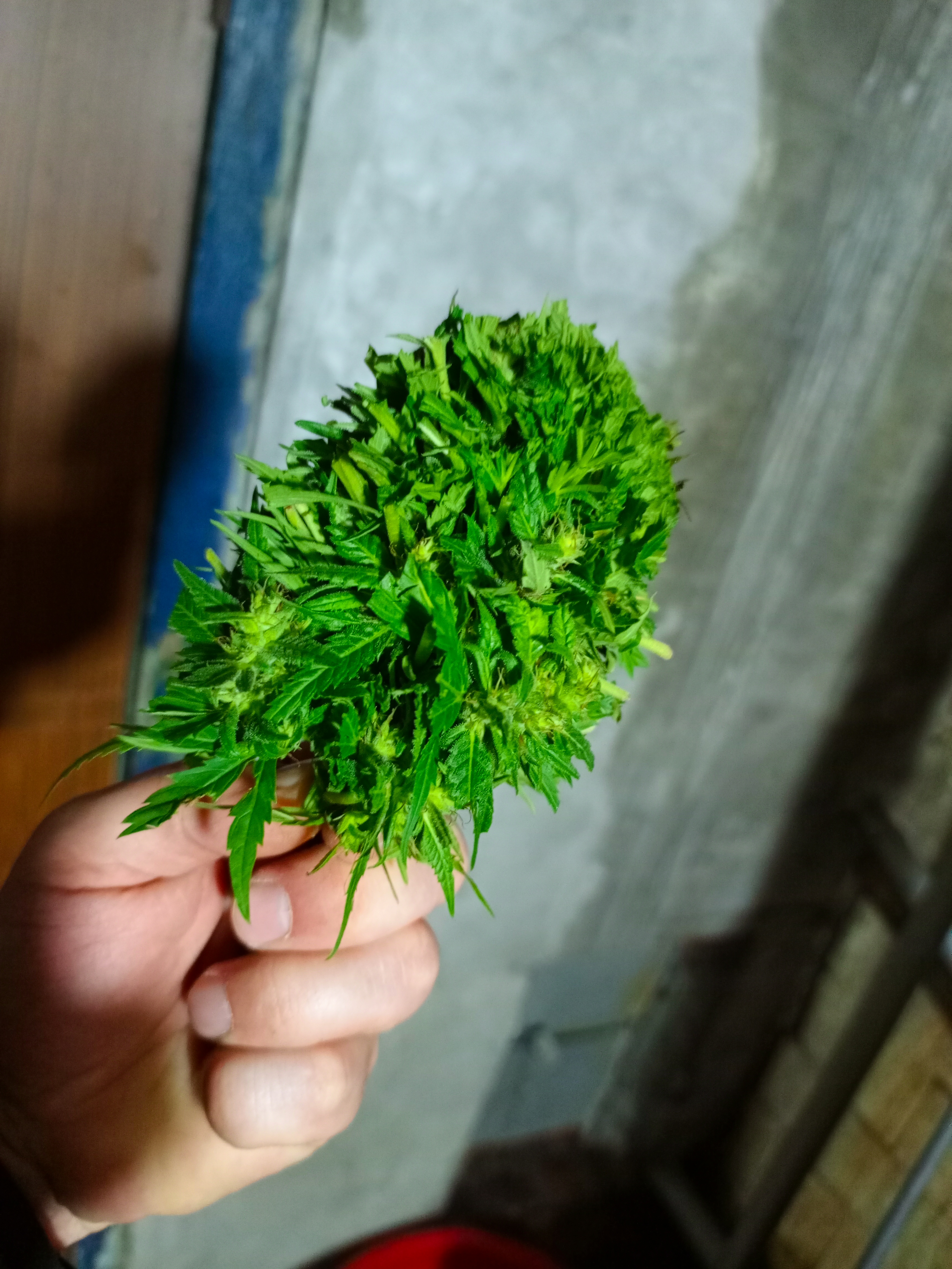 Крупные толстые твердые шишки сверху донизу. Очень сильный и мощный сорт. Вкус похож на очень мягкий сырой клей гориллы. Курить только ночью, лол). Очень сильный каннабис.