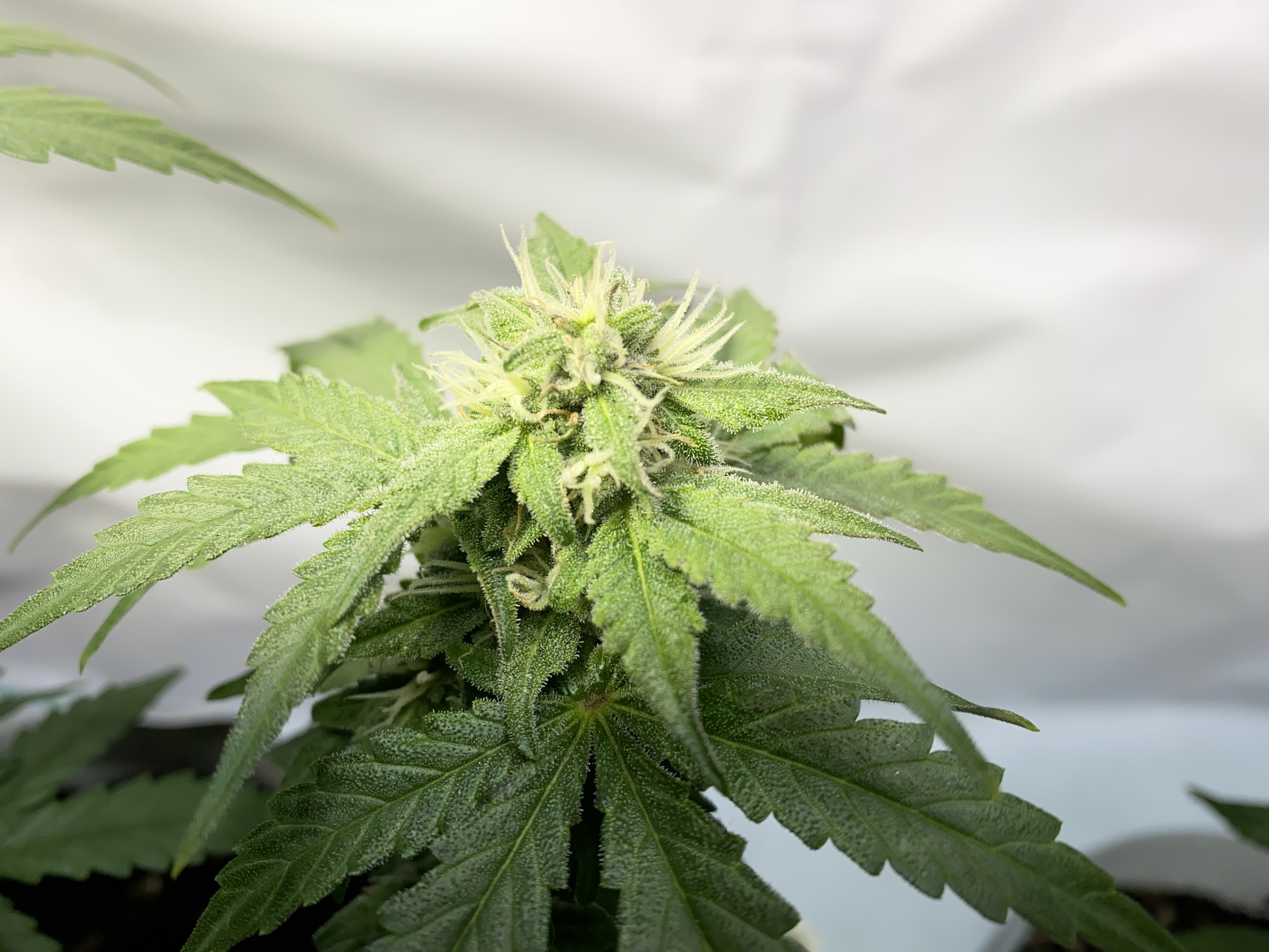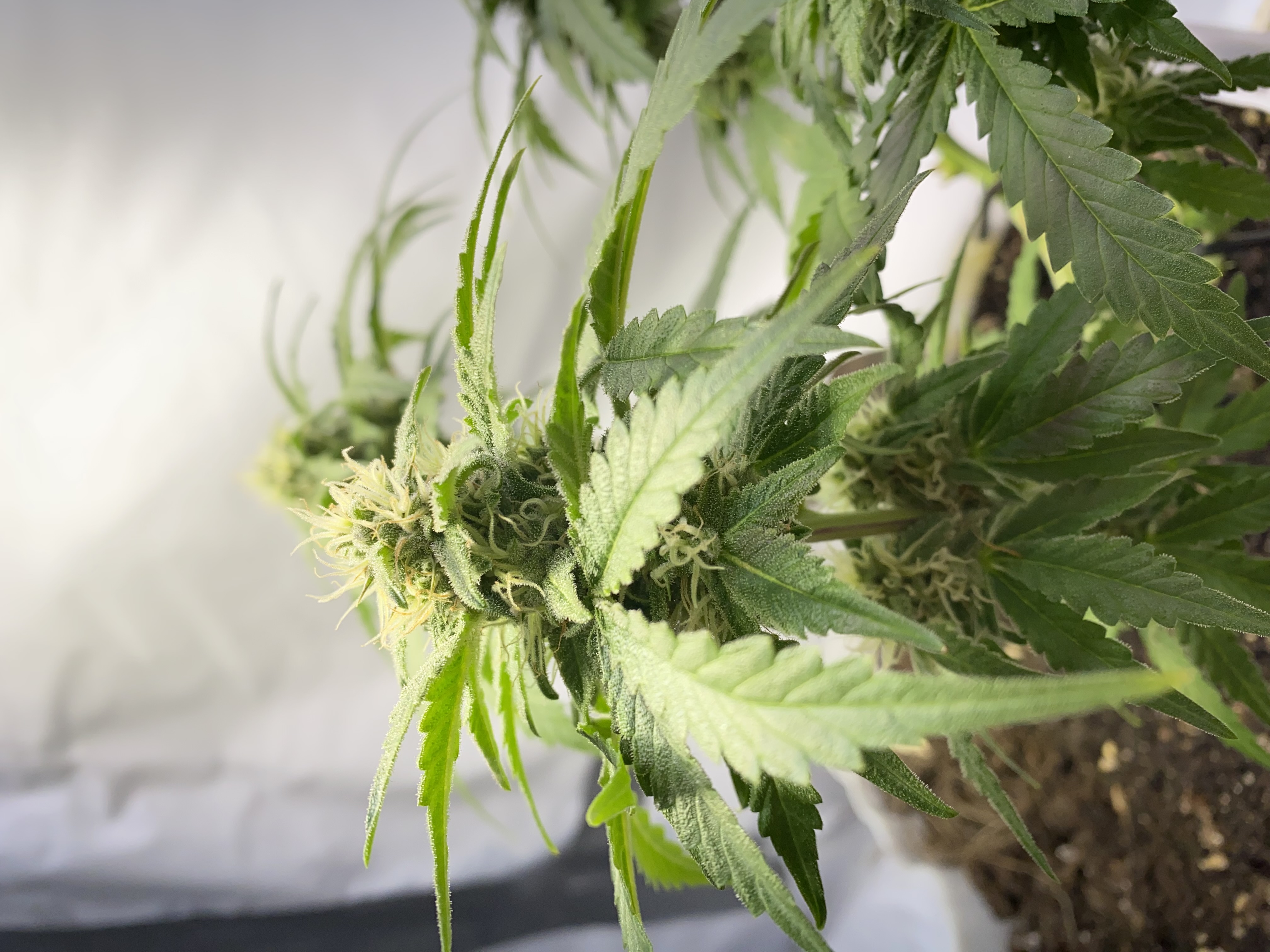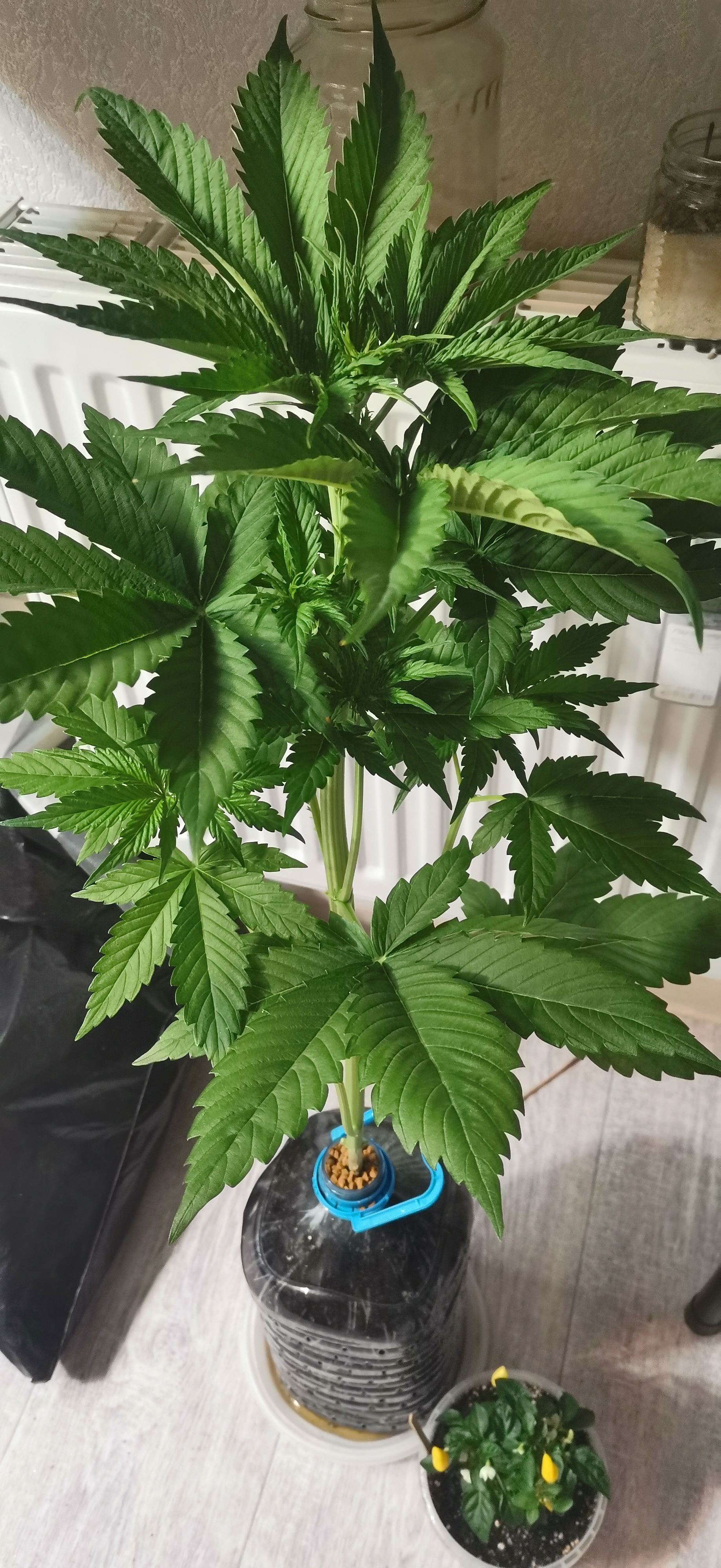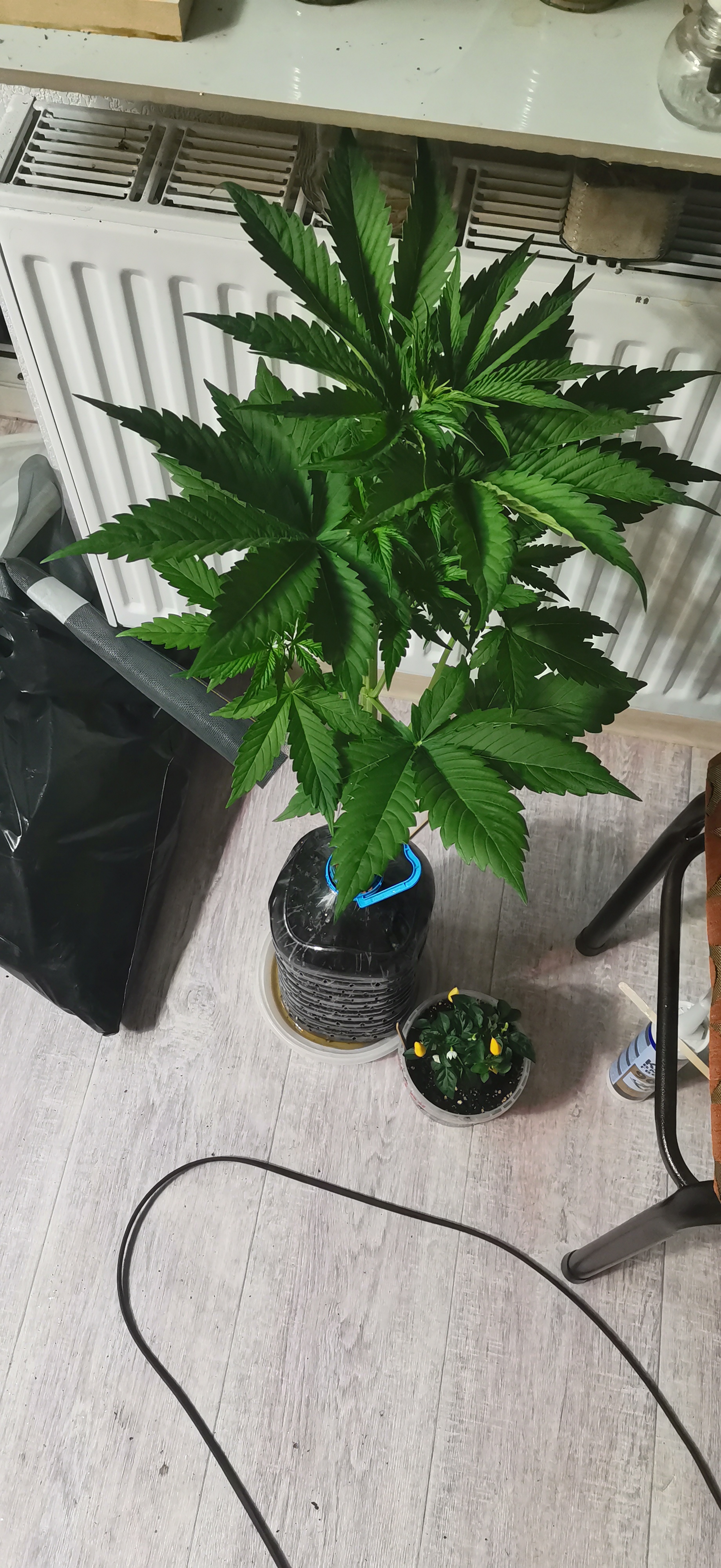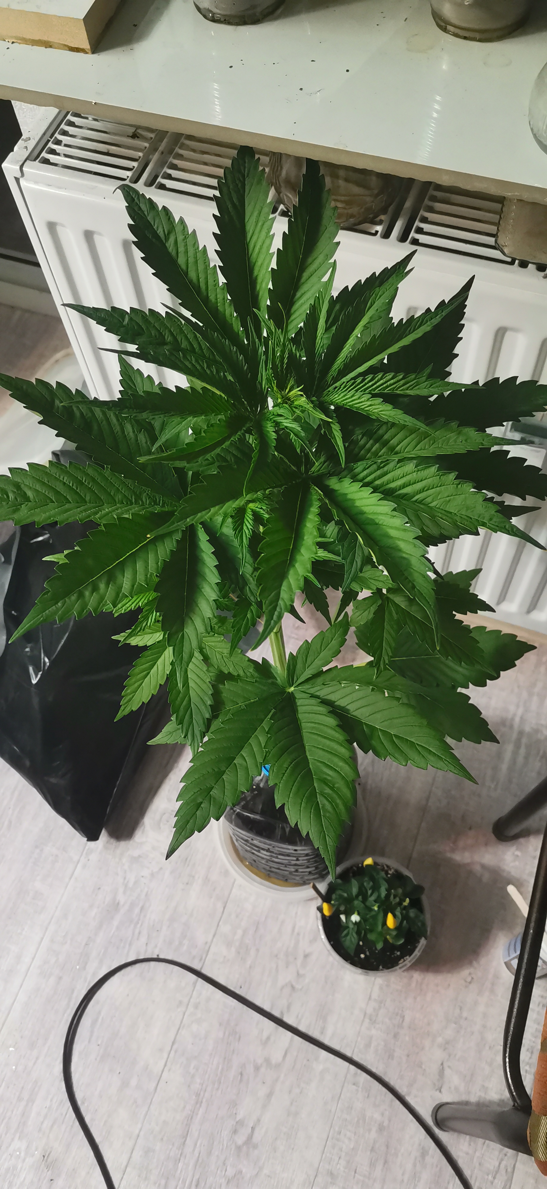 Все отлично тренировки отрезы листов переносит отлично без стресса вообще, растет на глазах 1 месяц и 10 дней цветет уже. Дала 1 основную и 9 других кол шишек, при сборе урожая дополню.